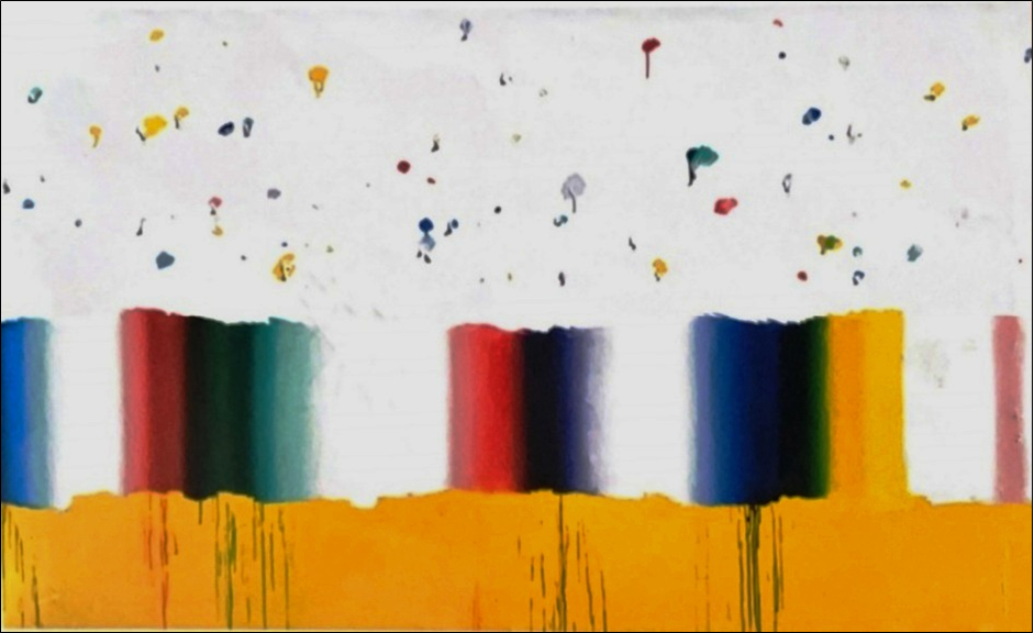 FINZI ENNIO Venezia 1931 "Il suono infinito" Acrilico su tela cm 150x250 del 1983. Autentica dell'artista su foto.