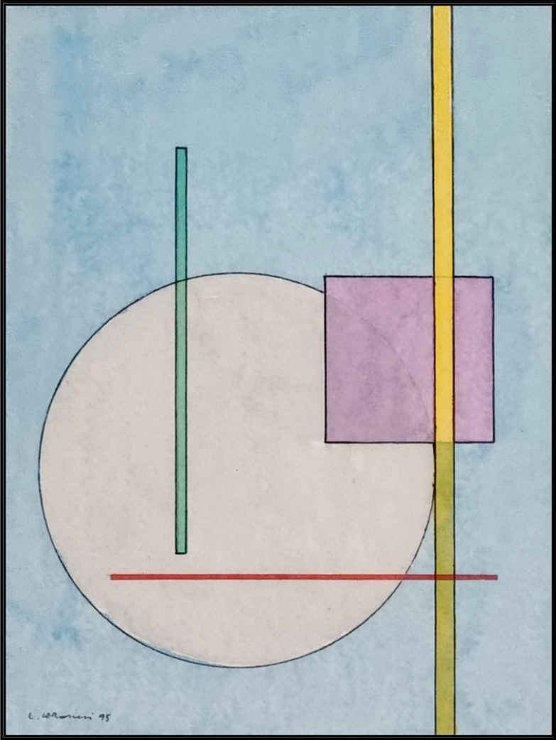 VERONESI LUIGI Milano 1908 - 1998 "Senza titolo" Acquerello e tecnica mista su cartoncino cm 24x30 del 1995. Firmato e datato sul fronte in basso a sinistra. Autentica su foto a cura dell'artista, in data 1996 e lettera di accompagnamento della stamperia "Dell'Arancio" a firma di Riccardo Lupo.