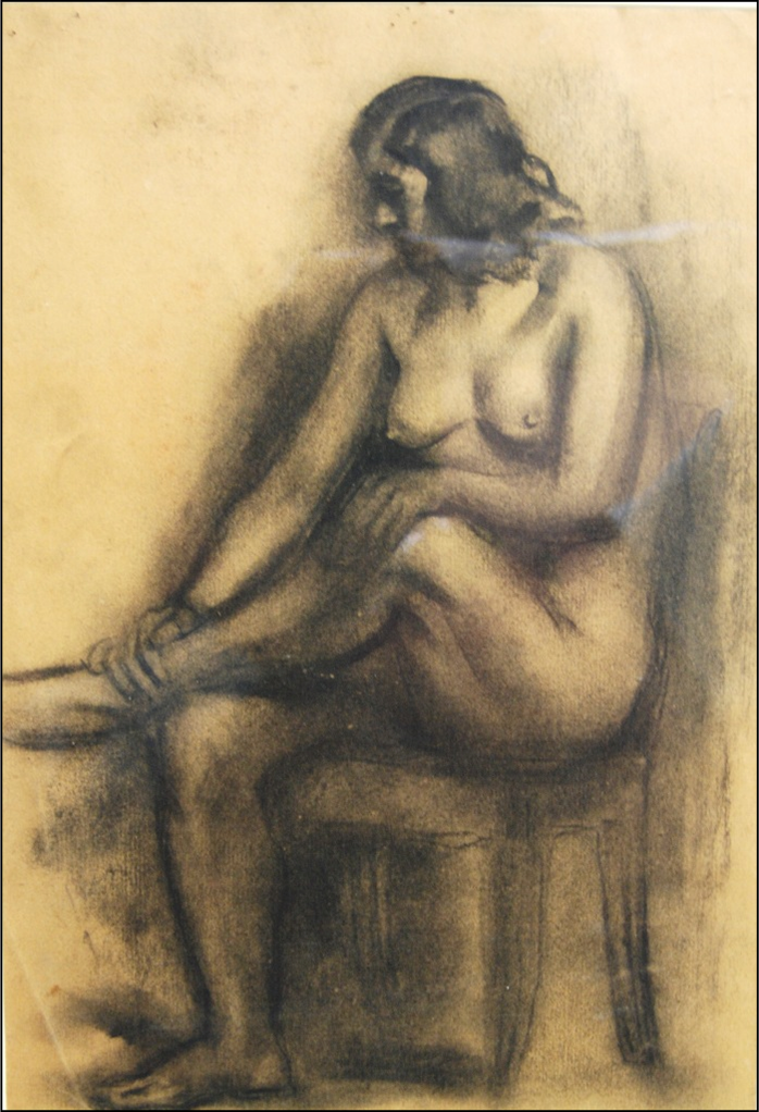 TOZZI MARIO Fossombrone 1895 - Francia 1979 "Nudino in posa" Carbone su carta beige cm 25x35 del 1919. Certificato di autenticità su foto a cura dell'Archivio Tozzi.
