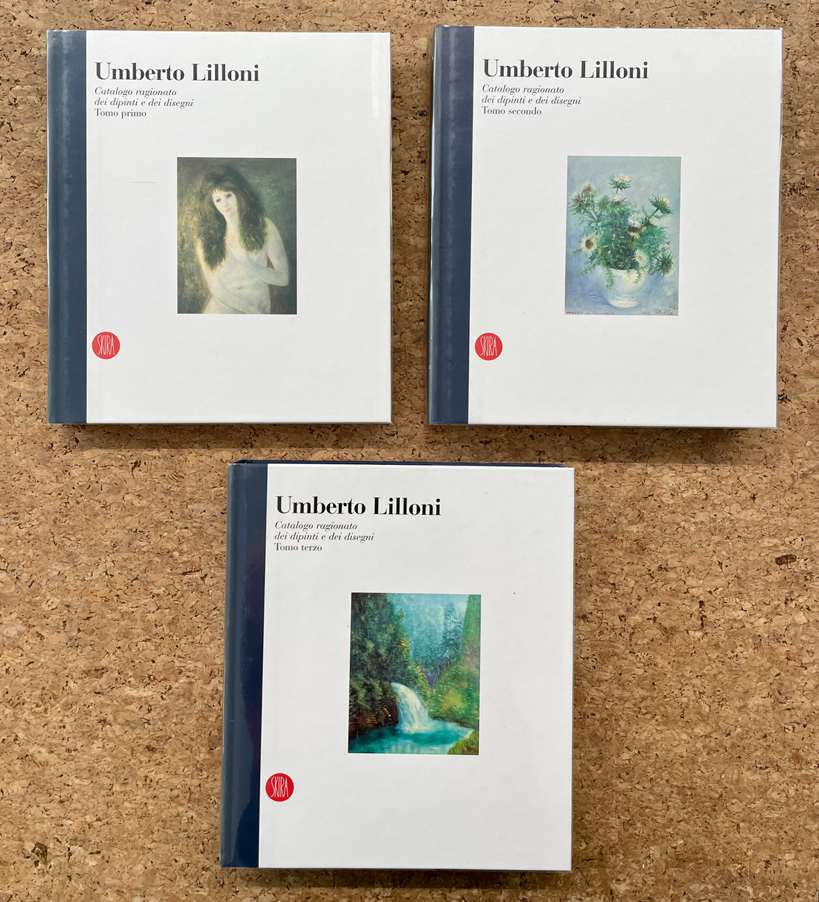 Cofanetto contenente tre tomi riccamente illustrati del catalogo ragionato dei dipinti e dei disegni dell'Artista (Tomo primo, tomo secondo e tomo terzo) a cura di Renata Lilloni