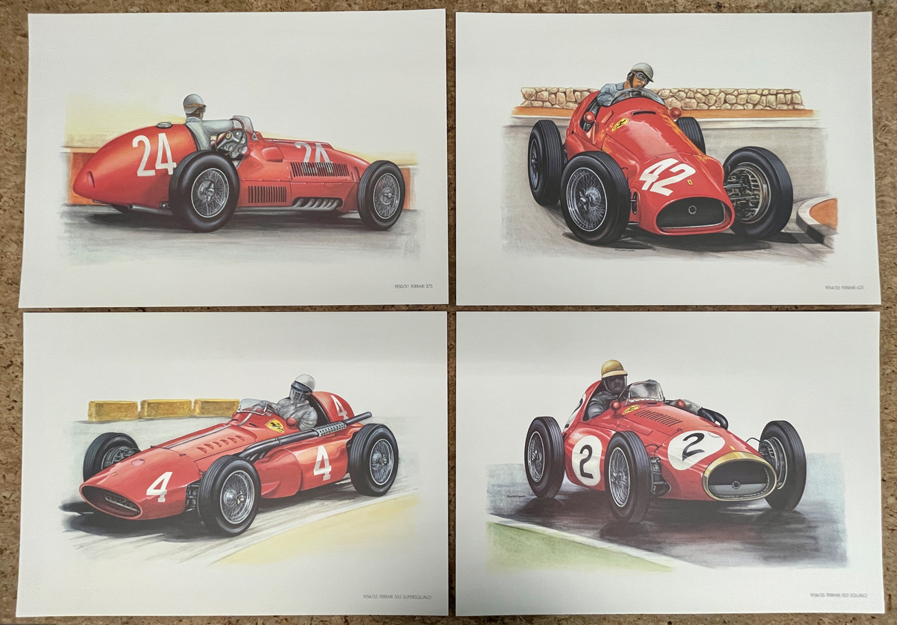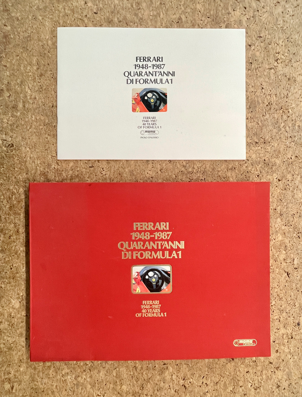 Cofanetto contenente una raccolta di 40 stampe litografiche a colori raffiguranti le vetture Ferrari che hanno preso parte al Campionato Mondiale di Formula 1 dal 1948 al 1987