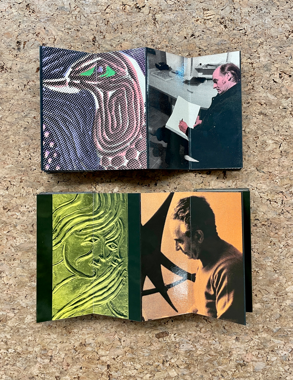 Leporello recante 48 pagine riccamente illustrate (fronte e retro, con immagini tratte dal laboratorio messo a disposizione degli artisti dalla Sterling)