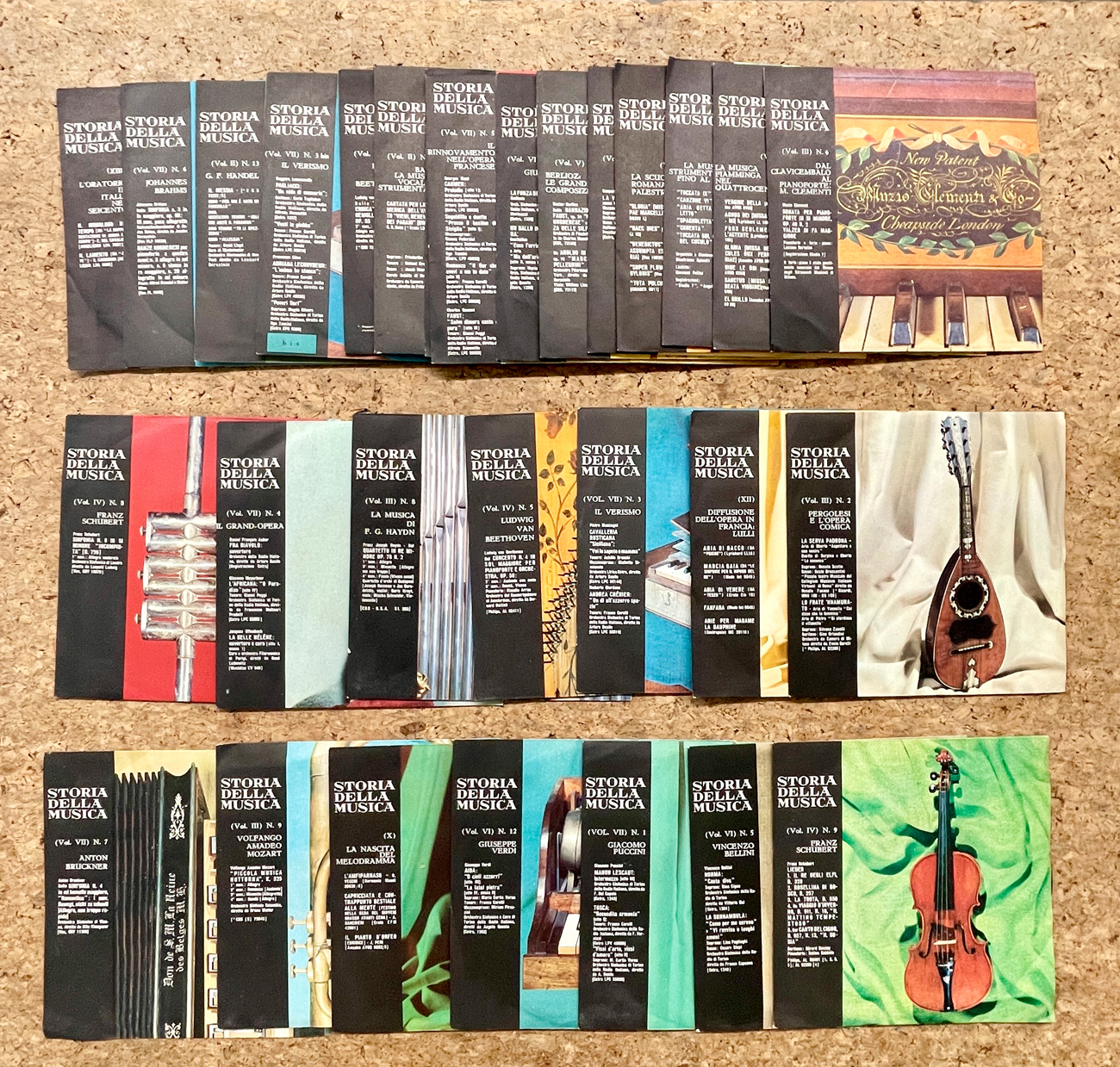 Lotto unico di 29 dischi 45 giri facenti parte della raccolta 'Storia della Musica' edita da Fabbri Editore