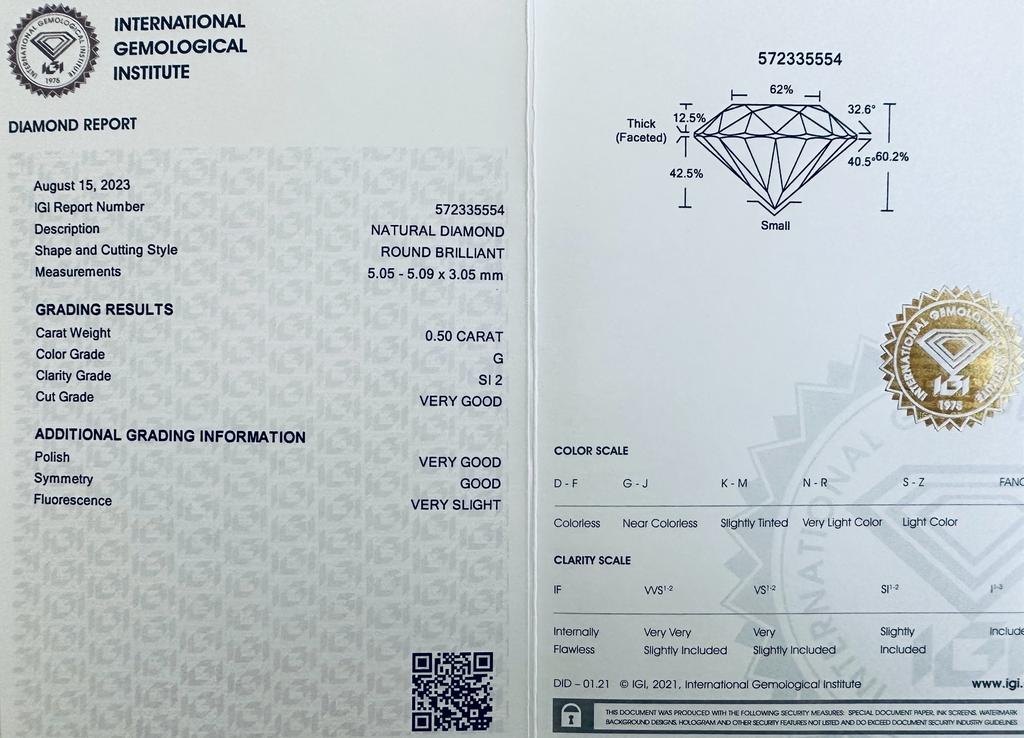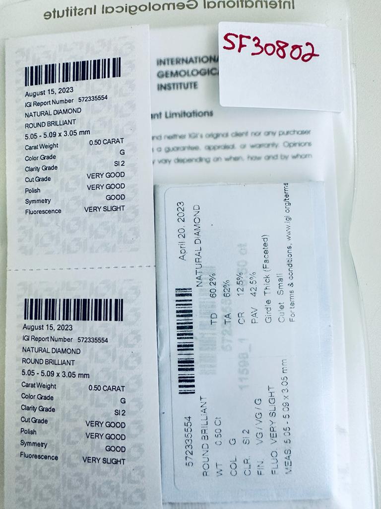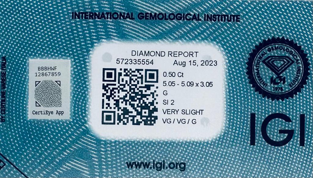 DIAMANTE 0,5 CT G - SI2 - IGI - SF30802