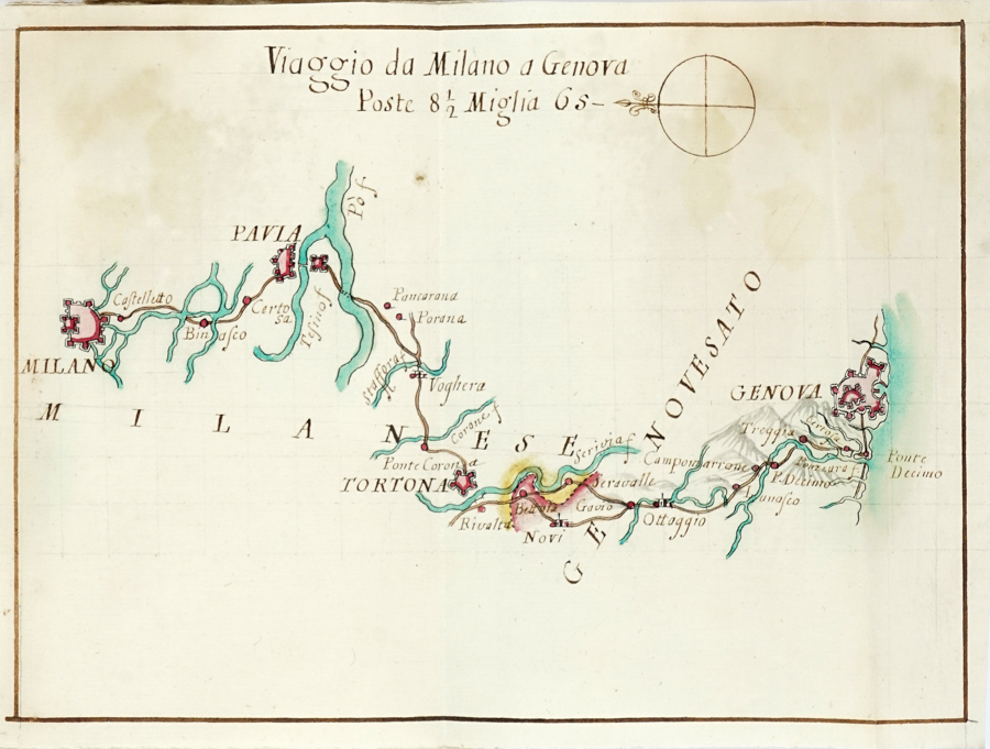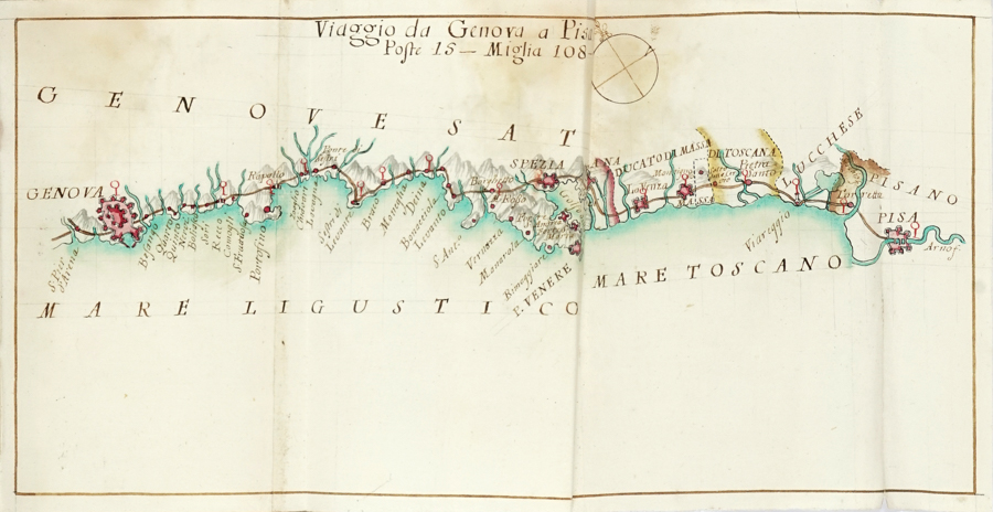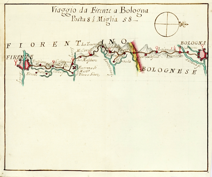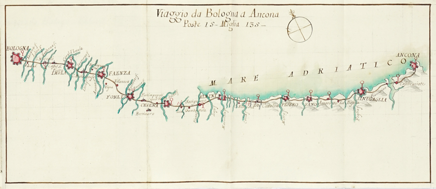 Viaggi d'Italia i più frequentati, e particolarmente da chi viaggia per le Poste, le quali si distinguano dalla presente figura. XIX secolo.