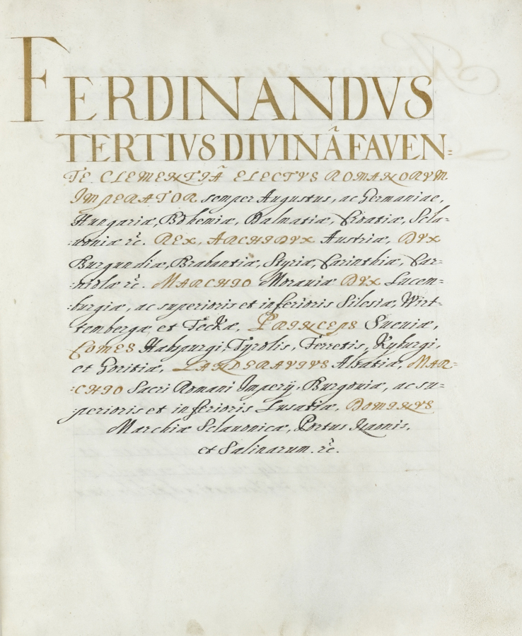 d'Asburgo Ferdinando III, Conferimento del titolo di Miles et Eques auratus, con firma autografa dell'imperatore Ferdinando III. Ratisbona, 1 ottobre 1653.