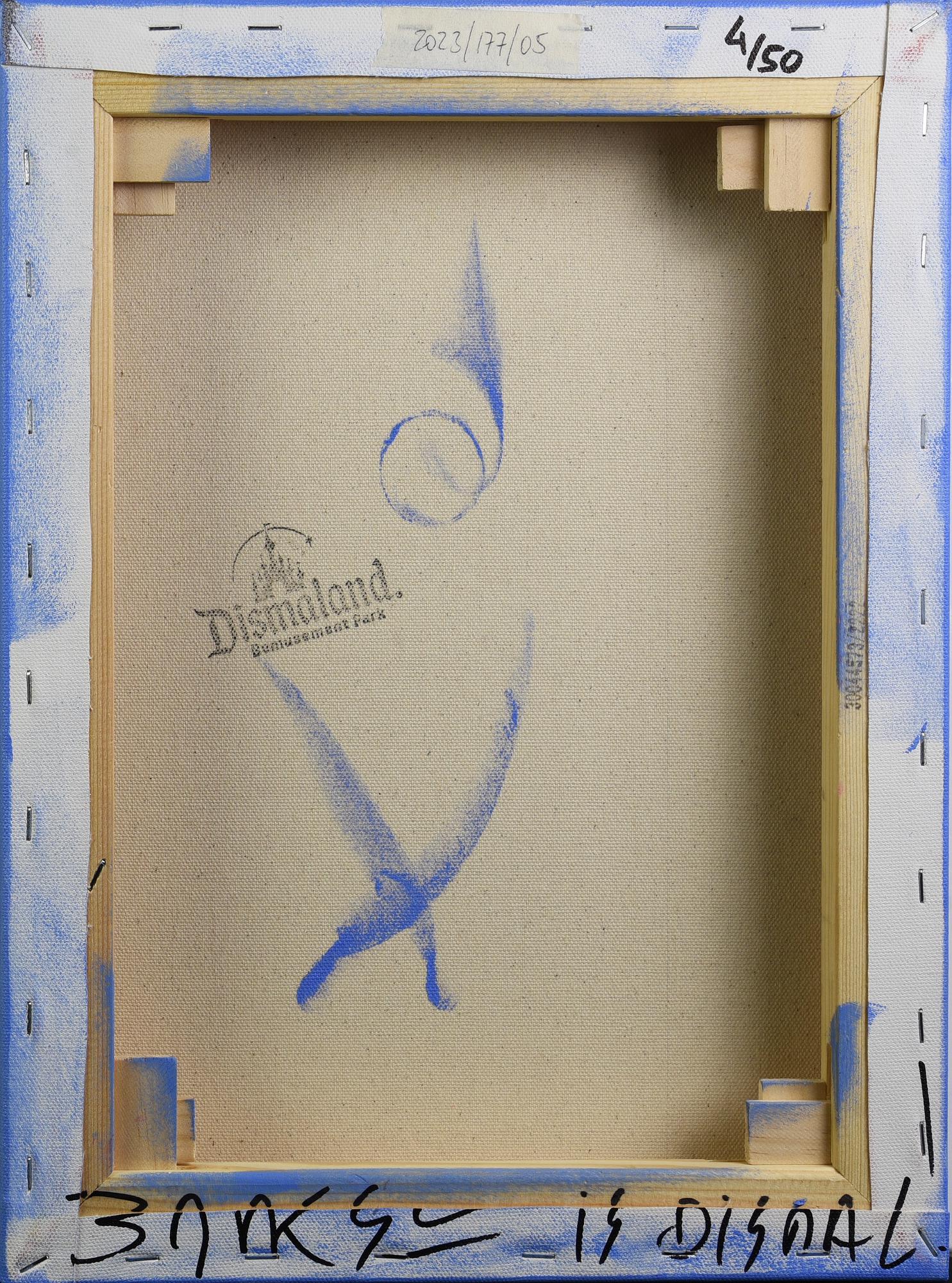 sul retro: iscritto "Banksy is Dismal!", timbro di Dismaland e tiratura