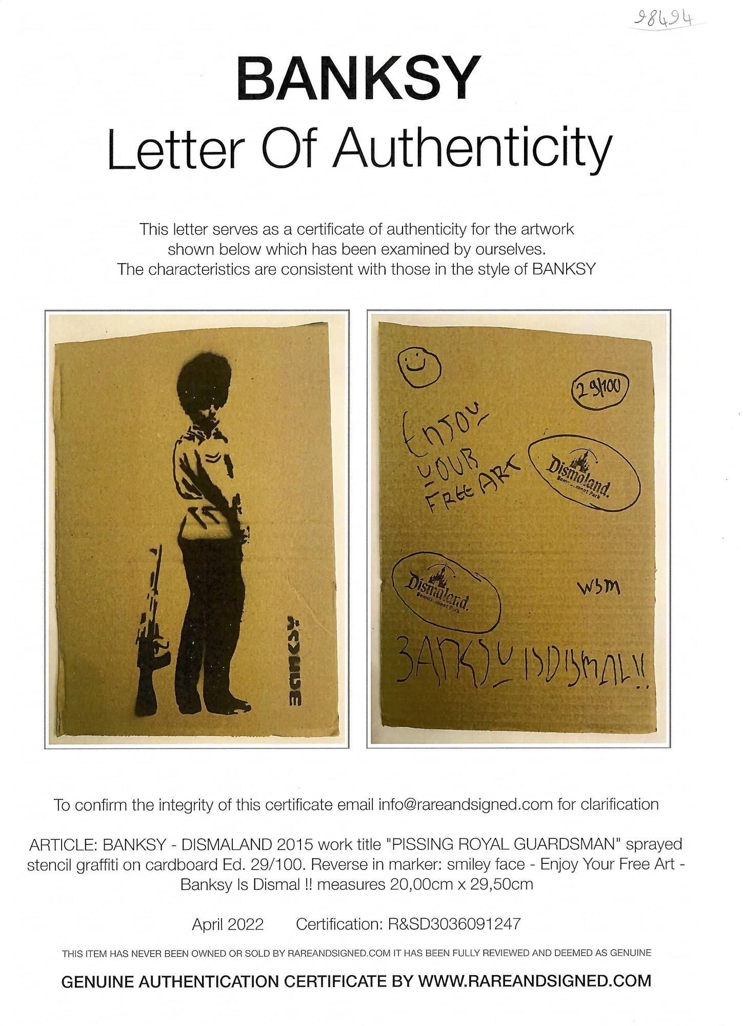 L'opera e' accompagnata da certificato di provenienza della Rare and Signed e dal biglietto di ingresso a Dismaland