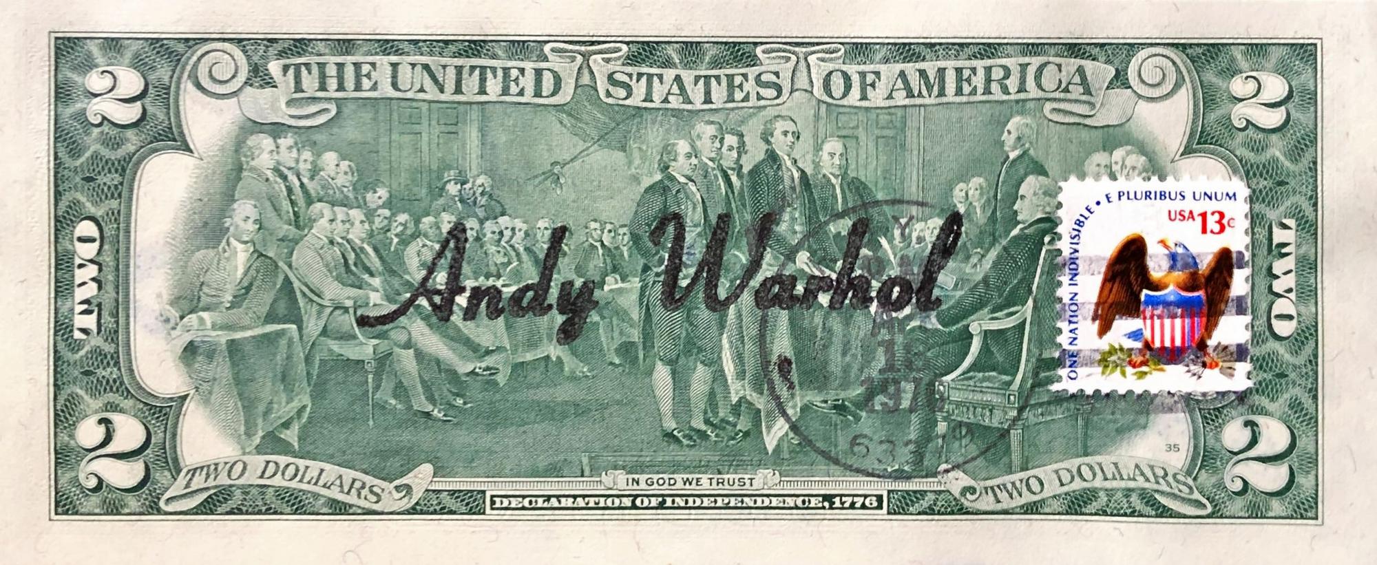 Andy Warhol TWO DOLLARS BILL (Thomas Jefferson), 1976 intervento su...