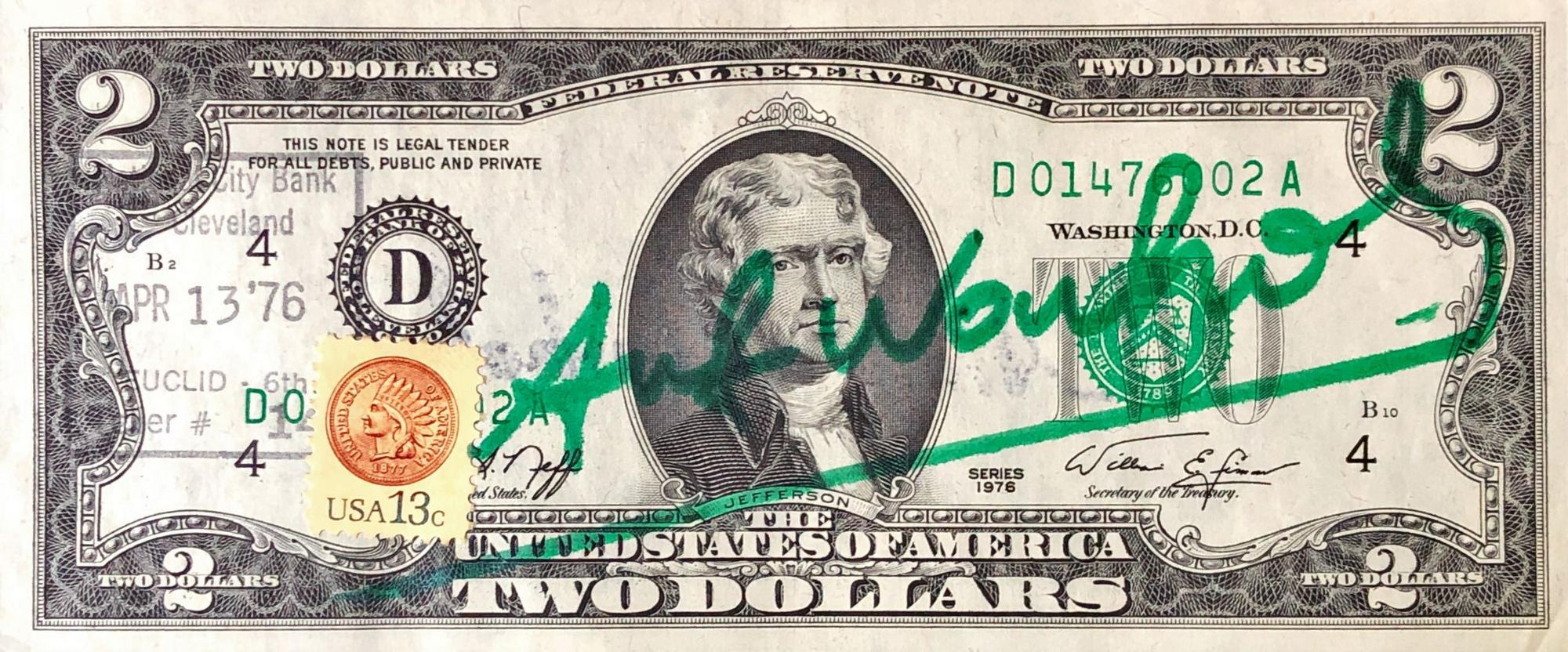 Andy Warhol TWO DOLLARS BILL (Thomas Jefferson), 1976 intervento su...