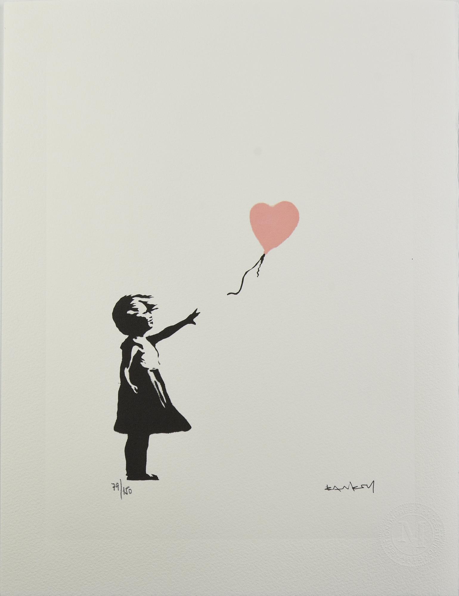 Da Banksy GIRL WITH PINK BALLOON eliografia su carta, cm 38,5x28,5; es....