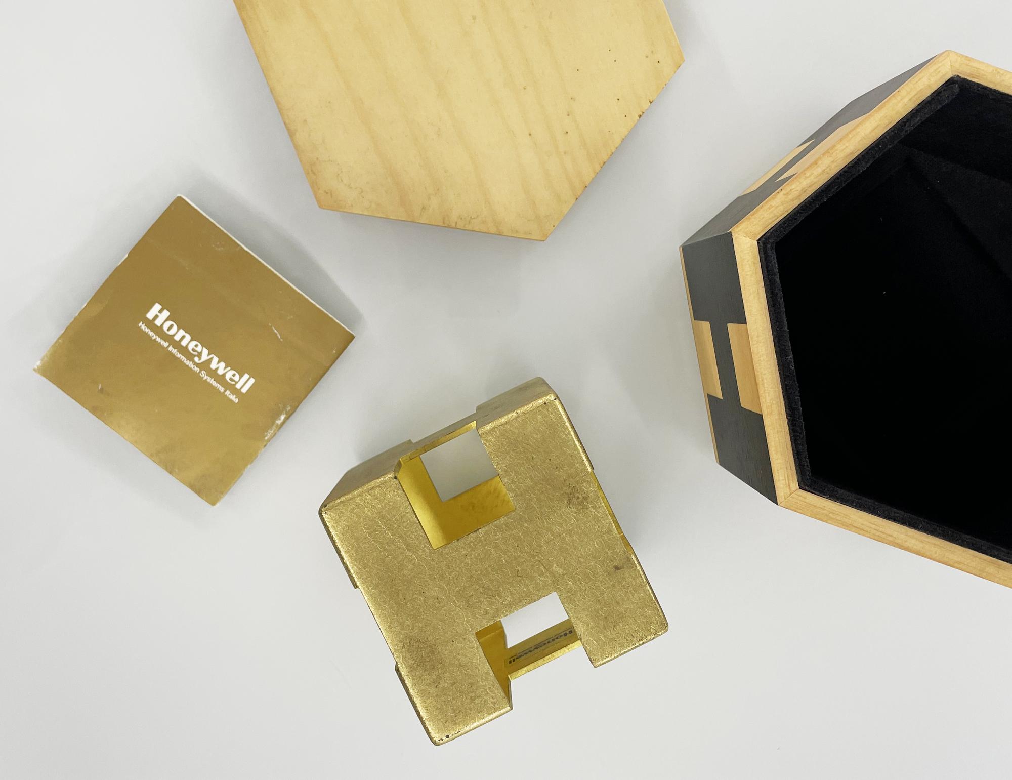 Attilio Lunardi H COME HONEYWELL multiplo in ottone passivato, cm 7x7x7 entro...