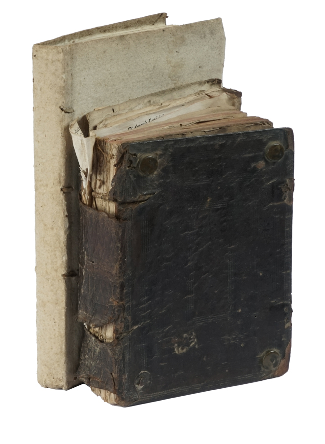 In-4° (mm 278x200). Pagine VIII, [2], 3-311, [1]. Assenti le carte P2-P7. Stemma xilografico al frontespizio, testatine, capilettera e finalini in legno nel testo. Legatura in pieno cartonato. Una gora d'acqua al margine esterno del piatto anteriore. SI AGGIUNGE: Lanteri Giacomo, Zanchi Giovanni Battista, Delle offese et diffese delle citta, et fortezze... In Venetia: appresso Roberto Meietti, 1601. In-4° (mm 214x155). Esemplare da studio, interamente gorato, con molte carte staccate e/o strappate, alcune maldestramente restaurate con pecette di rinforzo. Legatura in piena pelle con cornici concentriche impresse a secco ai piatti e 4 (di 8) borchie agli angoli. Parte di fermagli in ottone al piatto posteriore. Legatura staccata, copiose mancanze al dorso e ai piatti. Non passibile di restituzione. (2)