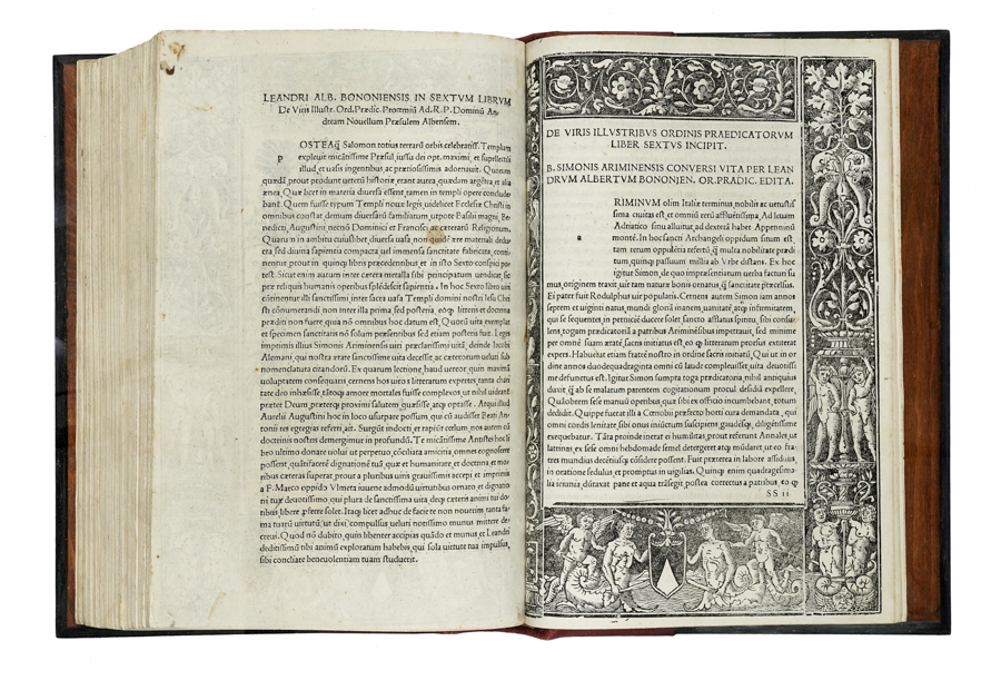 Alberti Leandro, De viris illustribus ordinis Praedicatorum libri sex in unum congesti. (Al colophon:) Bononiae: in aedibus Hieronymi Platonis civis Bononiensis expensis Io. Baptistae Lapi..., 1517.