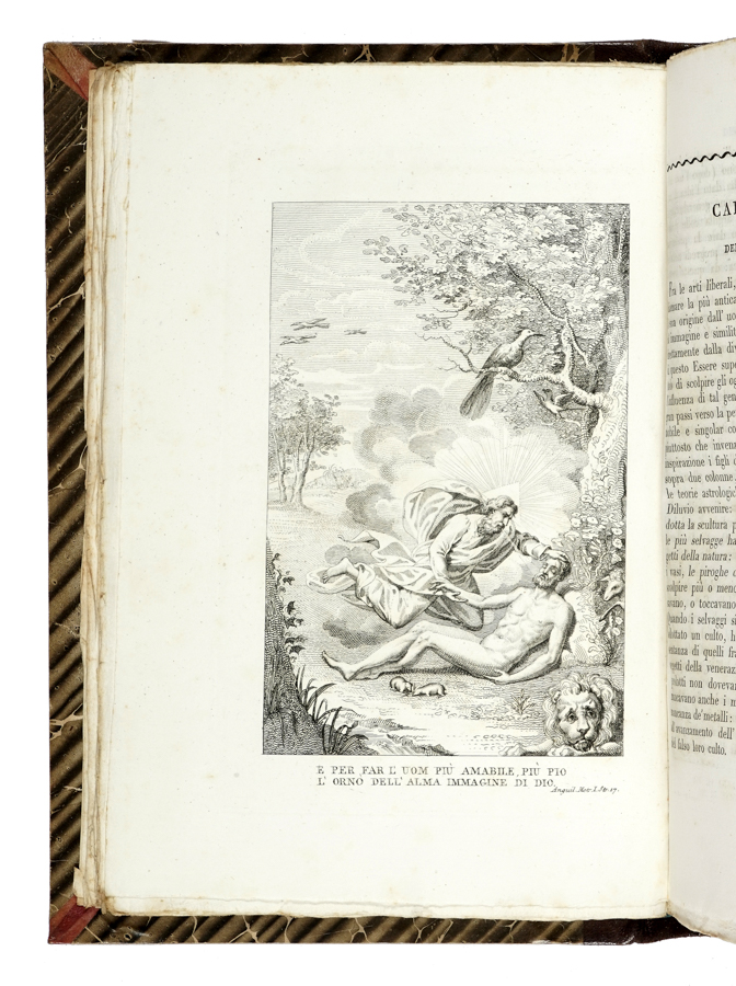 5 volumi in-8° (mm 240x170). Antiporta e occhietto a ciascun volume. Con, complessivamente, 39 tavole fuori testo, di cui alcune ripiegate. Esemplare in barbe. Carte diffusamente fiorite. Legatura in mezza pelle con piatti in carta marmorizzara e titoli in oro al dorso. Abrasioni ai piatti. (5)