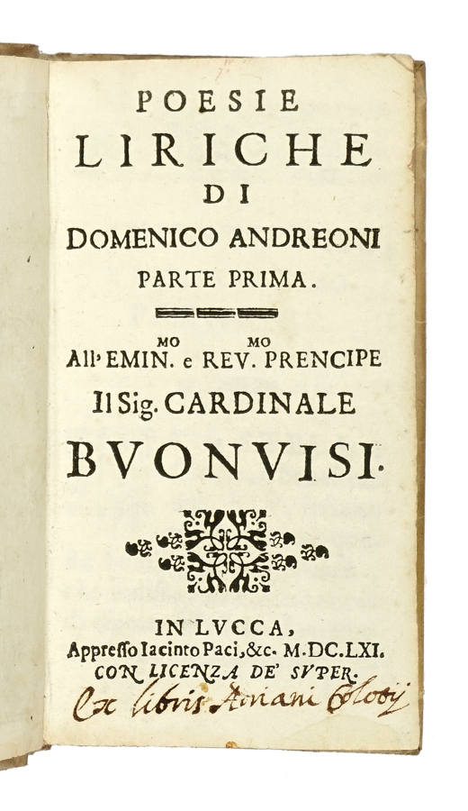Andreoni Domenico, Poesie liriche... Parte prima (-seconda). In Lucca: appresso Iacinto Paci, & c., 1661.