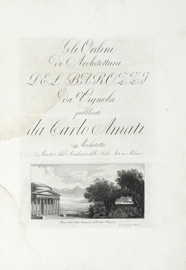 Barozzi (detto il Vignola) Giacomo, Gli ordini di architettura [...] pubblicati da Carlo Amati. Milano: nella Stamperia di Pirotta e Maspero si ritovano presso l'Autore, 1805.