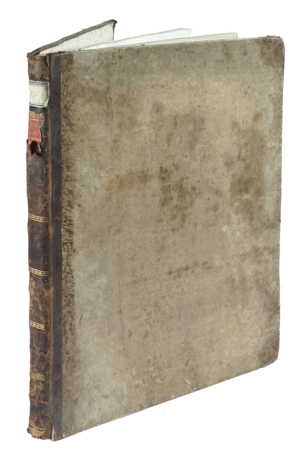 In folio (mm 490x355). Pagine [2], 56, [1], 1 bianca + 38 tavole incise in rame a piena pagina numerate I-XXXVIII. Frontespizio calcografico. Copia gorata, con tracce di muffa nella seconda parte del volume. Legatura coeva in mezza pelle con punte e piatti in carta. Titolo in oro su tassello al dorso. Persa parte del tassello, mancanze e segni d'uso lungo cuffie, cerniere e unghiature. (1)
