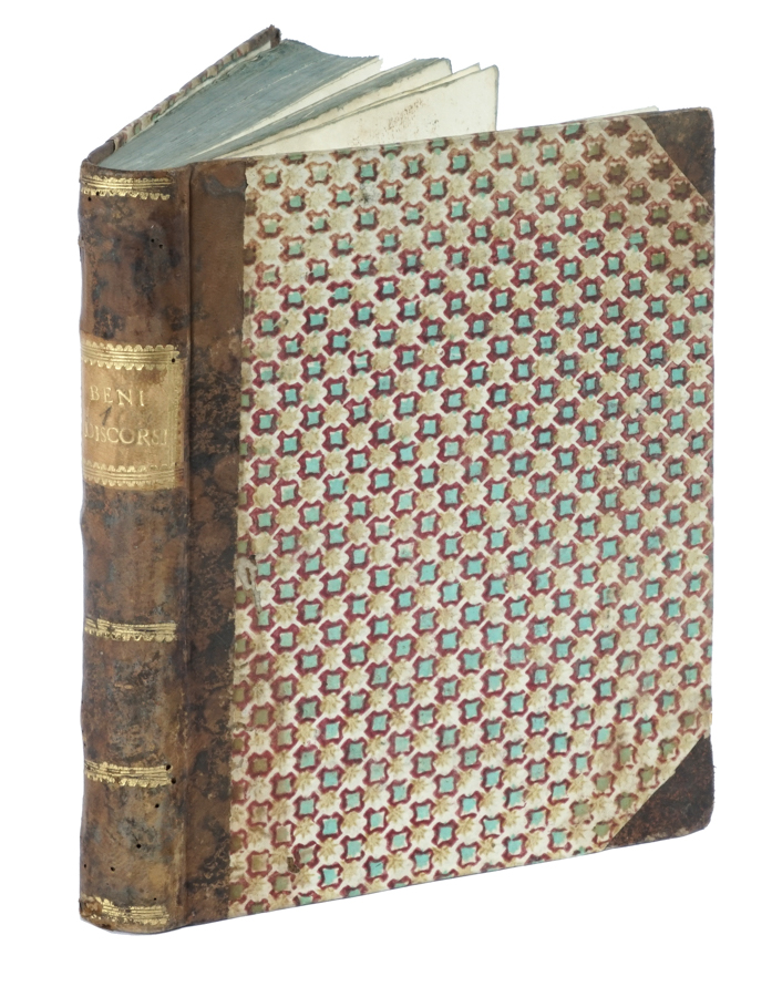 In-4° (mm 204x155). Pagine [4], 320, [4]. Marca xilografica ripetuta in principio e fine. Ottimo stato conservativo. Legatura settecentesca in mezzo vitello con piatti in carta marmorizzata, titolo su tassello al dorso, tagli blu. Nota di possesso di antica mano sul frontespizio. (1)