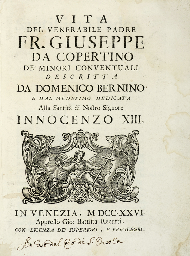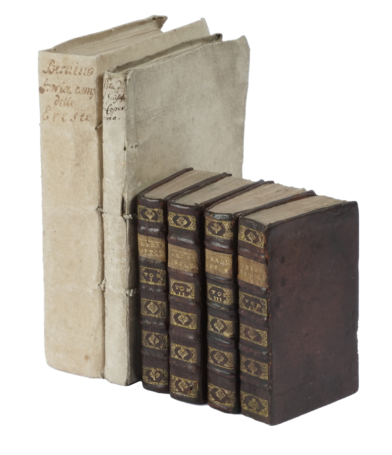 In-4° (mm 240x181). SI AGGIUNGE: Id., Istoria di tutte l'eresie descritta [...] Tomo primo (-IV). In Venezia: appresso Simone Occhi, 1746. 4 volumi in-12° (mm 150x90). SI AGGIUNGE: Id., Vita del venerabile padre Fr. Giuseppe da Copertino... In Venezia: Giò Battista Recurti, 1726. In-4° (mm 240x180). (6)