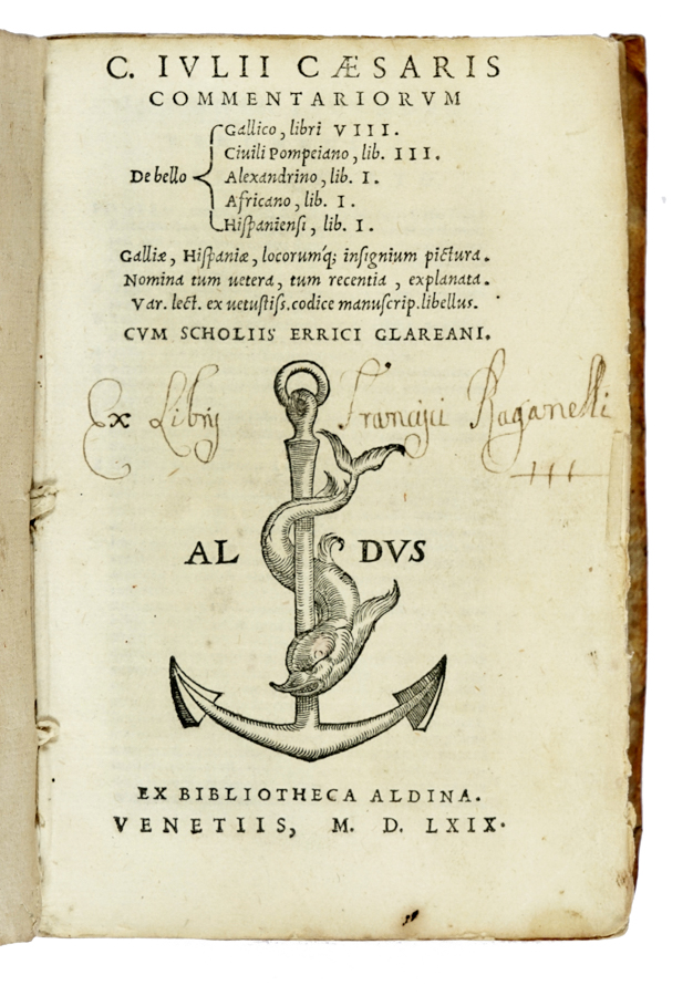 Caesar Gaius Julius, Commentariorum de bello Gallico, libri VIII. Venetiis: ex bibliotheca Aldina, 1569.