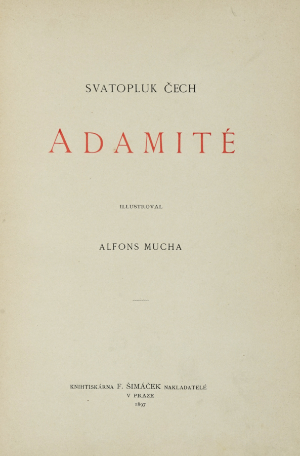 Cech Svatopluk, Adamité illustroval Alfons Mucha. Praze: F. Simacek, 1897.