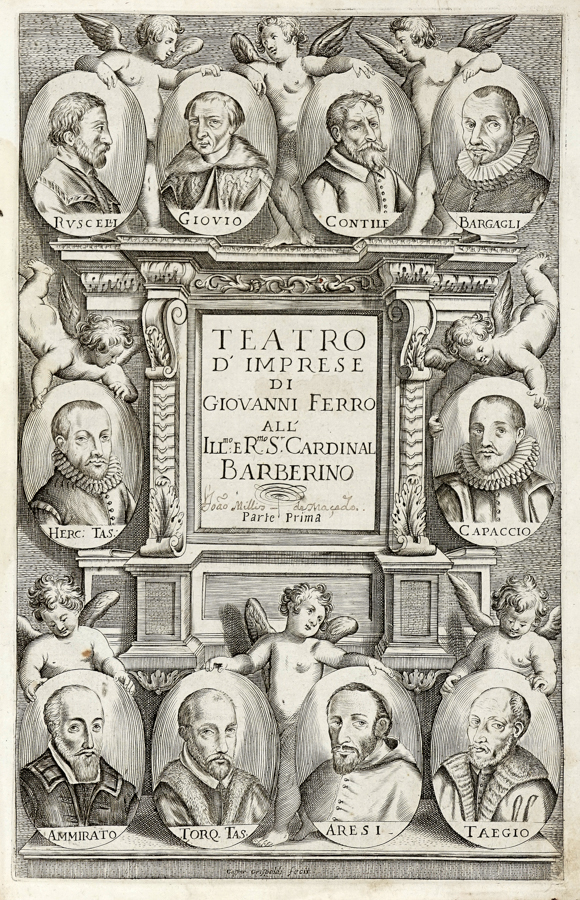 Ferro Giovanni, Teatro d'imprese. Parte prima (-seconda). (Al colophon:) In Venetia: appresso Giacomo Sarzina, 1623.