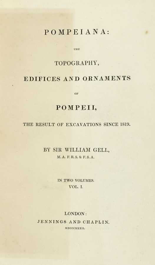 Gell William, Pompeiana: the topography, edifices and ornaments of Pompeii... London: Jennings and Chaplin, 1832.