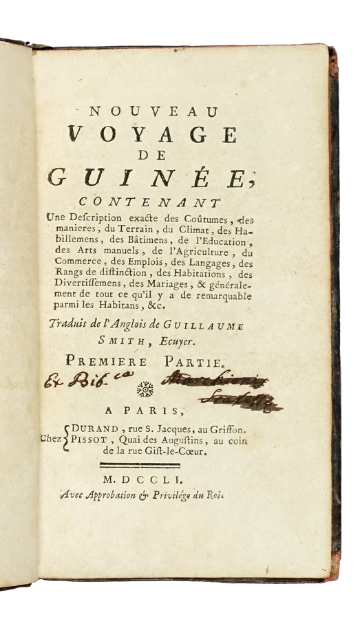 Smith William, Nouveau voyage de Guinée... Premiere (-seconde) partie. A Paris: chez Durand, Pissot, 1751.