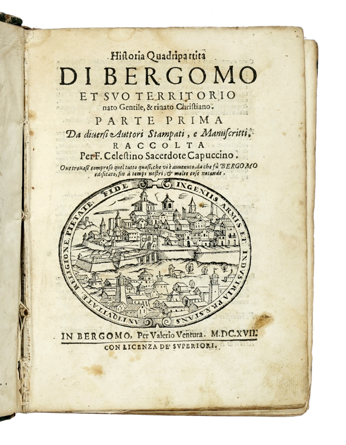 Lotto 370 | Historia quadripartita di Bergomo et suo territorio nato Gentile, & rinato Christiano. Parte prima (-seconda parte, volume secondo). In Bergomo: per Valerio Ventura (-Paolo Bizardo), 1617-1618.