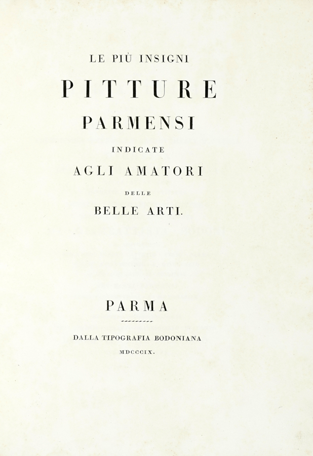 Rosaspina Francesco, Le più insigni pitture parmensi indicate agli amatori delle belle arti. Parma: dalla tipografia bodoniana, 1809 [i.e. 1816].