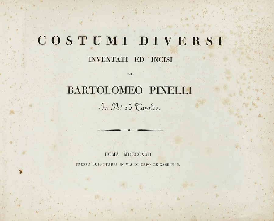Pinelli Bartolomeo, Costumi diversi inventati ed incisi da Bartolomeo Pinelli in n. 25 tavole. Roma: Luigi Fabri, 1822.