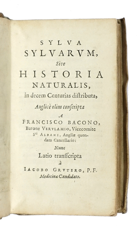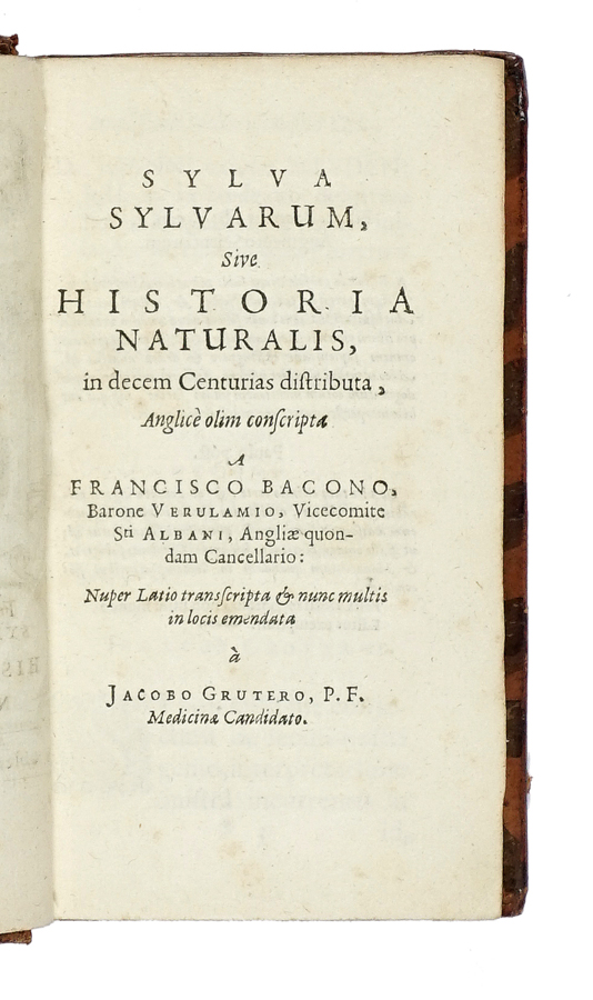 Bacon Francis, Sylva sylvarum sive Hist. Naturalis et Novus Atlas. Lug. Batavor: apud Franciscum Hackium, 1648.
