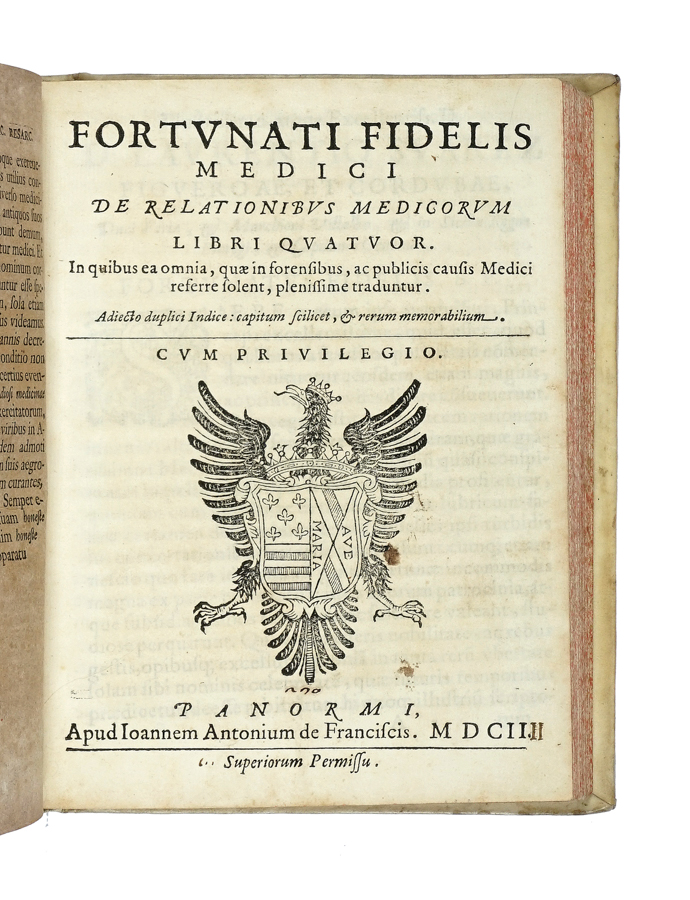 Fedele Fortunato, De relationibus medicorum libri quatuor. Panormi: apud Ioannem Antonium de Franciscis, 1602.