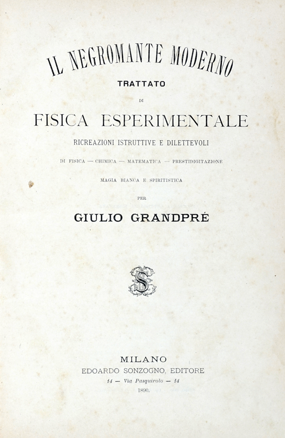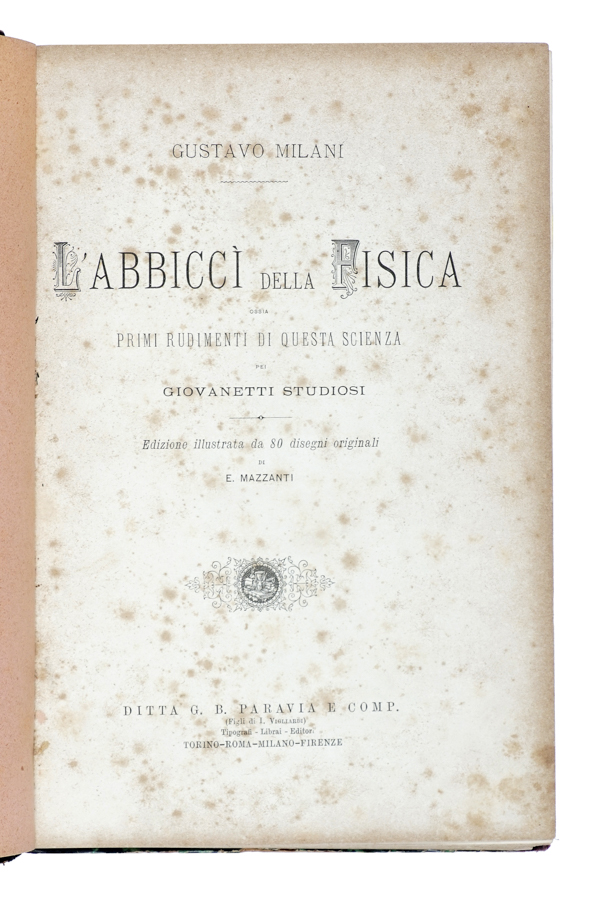 Lotto composto di 16 opere di scienze dilettevoli. XIX-XX secolo. Compongono il lotto: 1) Grandpré Giulio, Il negromante moderno. Trattato di fisica esperimentale... Milano: Sonzogno, 1890. 2) Milani Gustavo, L'abbiccì della fisica ossia primi rudimenti di questa scienza pei giovanetti studiosi. Torino: G. B. Paravia e Comp., 1888. 3) Tissandier Gastone, Le ricreazioni scientifiche ovvero l'insegnamento coi giuochi... Milano: Treves, 1889. 4) Leonida Valerio, 1300 giochi di scienza dilettevole... Milano: Hoepli, 1938. 5) Zammarchi Angelo, 800 facili esperienze di fisica. Con 600 illustrazioni. Brescia: La Scuola, 1930. Elenco completo disponibile su richiesta. (17)