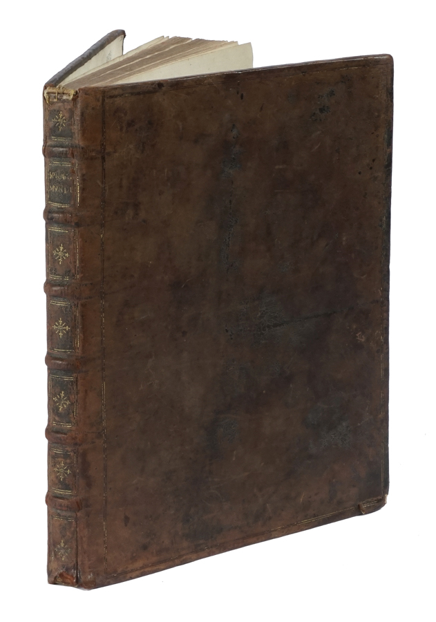 Biancani Giuseppe, Sphaera mundi, seu Cosmographia, demonstrativa, ac facili methodo tradita... Mutinae: ex typographia Andreae, & Hieronymi Cassiani, 1653. 2 parti in 1 volume in folio (mm 297x205). Pagine [12], 232 [i.e. 228] con 2 tavole fuori testo ripiegate; 12 [di 24], [2] con 1 tabella ripiegata e 3 [di 6] tavole fuori testo. Copia priva delle carte I3-I4 nella prima parte, del fascicolo B e di 3 tavole fuori testo nella seconda. Gora nel margine superiore delle carte, più visibile nei fascicoli centrali. Legatura coeva in piena pelle. Tracce d'uso a angoli e cuffie. (1)Edizione definitiva della Sphaera mundi, dopo la prima del 1620 e quelle del '30 e del '35. «Naturalmente la presente è più corretta di quelle che la precedettero» (Cinti, 95). Per il dettaglio dell'opera si veda il lotto precedente.