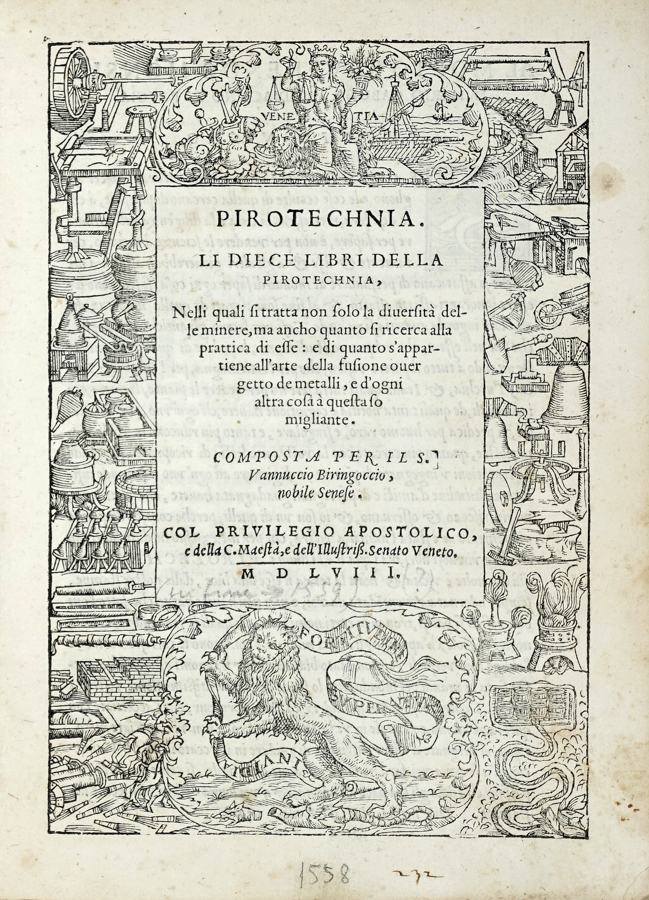 Biringuccio Vannoccio, Pirotechnia. [Venezia: Curzio Troiano Navò], 1558. (Al colophon:) In Vinegia: per Comin da Trino di Monteferrato, 1559.