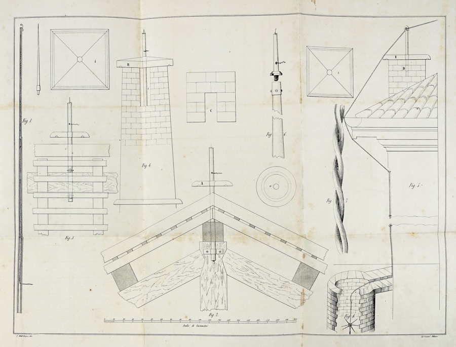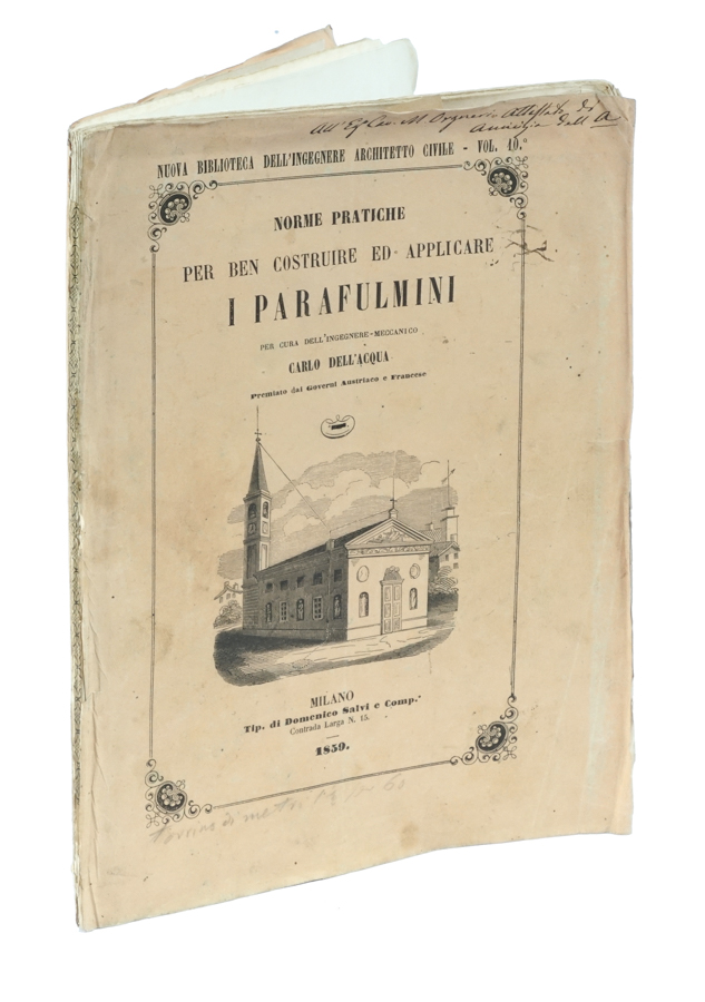 Dell'Acqua Carlo, Norme pratiche per ben costruire ed applicare i parafulmini. Milano: Tip. di Domenico Salvi e Comp., 1859.