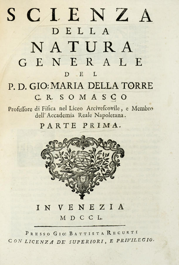 Della Torre Giovanni Maria, Scienza della natura generale [...] Parte prima (-seconda). In Venezia: presso Gio. Battista Recurti, 1750.