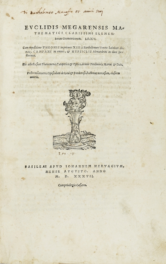 Euclides, Elementorum geometricorum. lib. XV. Basileae: apud Iohannem Hervagium, mense Augusto 1537.