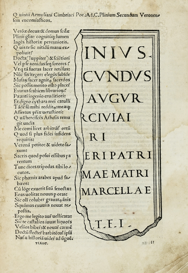 Plinius Secundus Gaius, [Historiae naturalis libri XXXVII]. (Al colophon:) [Venezia]: per Ioannem rubeum & Bernardinum fratresque Vercellenses, 1507. die. xvi. Ianuarii.