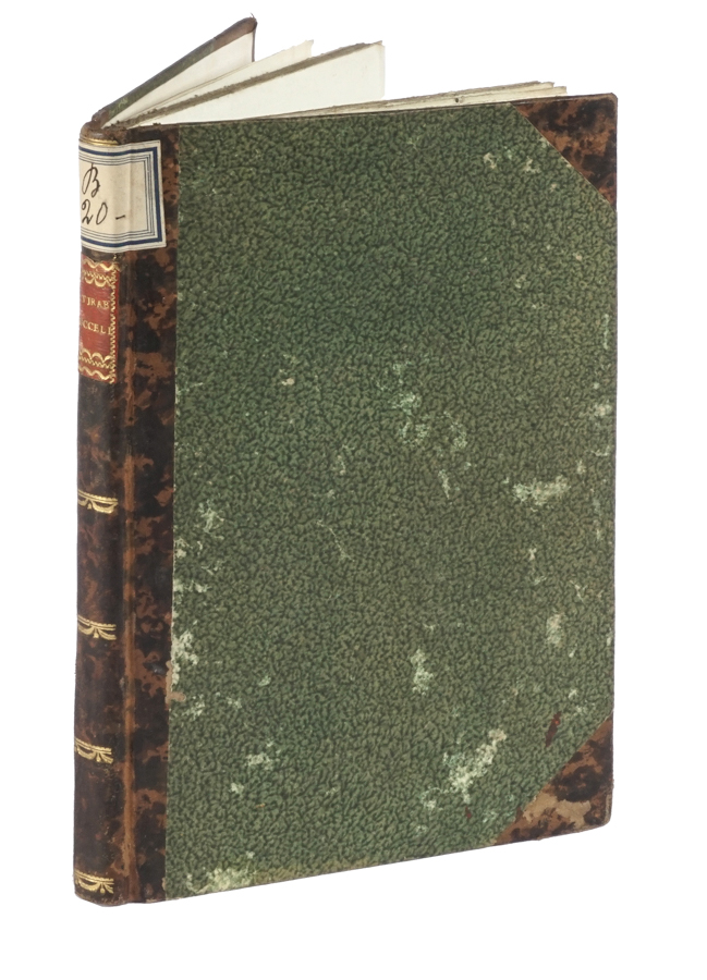 Tirabosco Antonio, L'uccellagione [...] libri tre. Verona: dalla tipografia Bisesti, 1807. In-8° (mm 225x140). Pagine 88 con un'antiporta incisa in principio. Esemplare impresso su carta forte azzurrina. Copia marginosa e ben conservata. Legatura coeva in mezza pelle con punte e piatti in carta marmorizzata. Titoli in oro su tassello al dorso. Vecchia etichetta di collocazione applicata al dorso. Minime mancanze ai piatti. (1)Quarta edizione, dopo la prima del 1775 di questa rinomata opera venatoria. Ceresoli 520; Lastri 126 cita la sola prima.