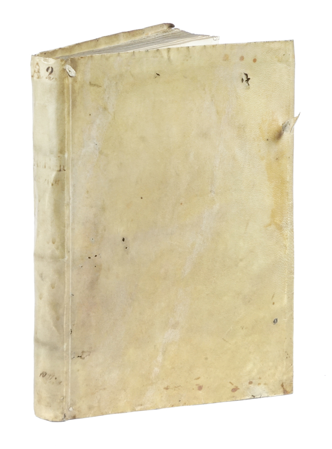 Iamblichus e altri, De mysteriis Aegyptiorum, Chaldaeorum, Assyriorum. [Tr: Marsilius Ficinus]. Add: Proclus: In Platonicum Alcibiadem. De sacrificio et magia. Porphyrius: De divinis et daemonibus... (Al colophon:) Venetiis: in aedibus Aldi, mense Septembri 1497. Super-Chancery folio (mm 307x198). Carte [138] (di 186). Segnatura: a-i⁸, K⁴, L-M⁶, N-Z⁸ (- N-S8), &¹⁰ (&10 bianca). Testo in caratteri romani su 37 righe più il titolo; spazi per capilettera con letterine-guida, 37 righe più il titolo. Copia postillata, con la carta a2 erroneamente nominata a3. Esemplare scompleto dei fascicoli N8, O8, P8, Q8, R8, S8. Gore marginali ad alcune carte e fioriture sparse. Legatura in pergamena antica floscia muta con lacerti di legacci. Ex-libris della famiglia Peruzzi al contropiatto anteriore. (1)PRIMA EDIZIONE di questa importante raccolta di opere neoplatoniche, tradotta dal greco da Marsilio Ficino e probabilmente finanziata da Girolamo Biondo, commerciante tipografo fiorentino operante a Venezia. La prefazione di Ficino è rivolta al giovane cardinale Giovanni de' Medici. I fascicoli mancanti contengono il De Daemonibus di Psellos e l'Expositio [...] in Theophrastum de sensu. phantasia. & intellectu di Prisciano e Ficino, che presumibilmente non furono voluti da un antico proprietario. Renouard 13/6; Manuzio tipografo 17; Goff J216; Ahmanson-Murphy 15; IGI 5096; BMC V 557.