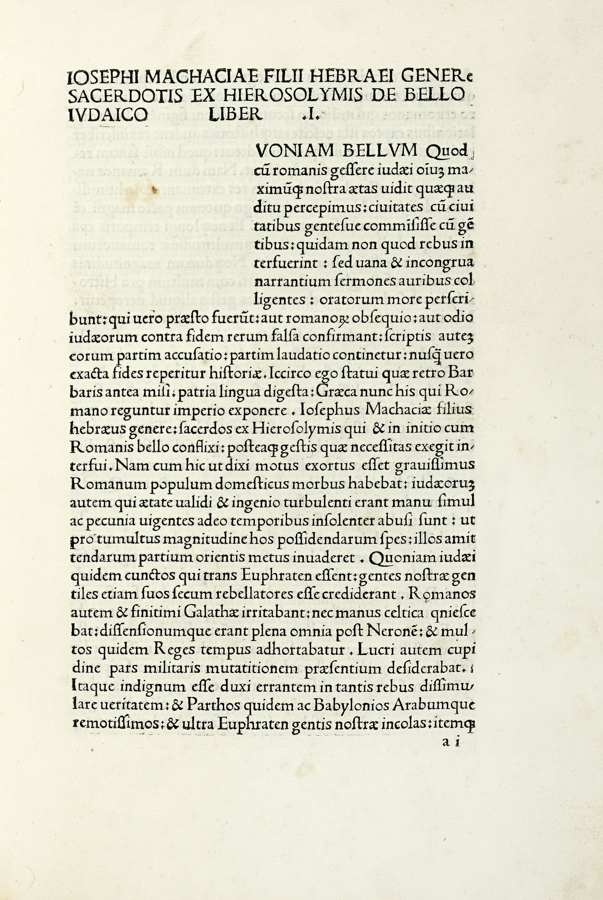 Iosephus Flavius, De antiquitate Judaica. De bello Judaico. (Al colophon:) Verona: Petrus Maufer, de Maliferis, for Innocens Ziletus, 25 December 1480.