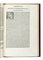 Lactantius Lucius Caecilius Firmianus, Opera perquam accurate castigata... (Al colophon:) Impressum Venetiis: arte et impensis Ioannis Tacuini, 152 [i.e. 1502] die iii e nono Ianuarii. 2 parti in 1 volume in-folio (mm 314x210). Carte VIII, CLX, XXII. Marca tipografica in legno al frontespizio; capilettera xilografici. Carta A1 con testatina e capolettera in rosso. Primo colophon, che reca la data: 1502 die iii Ianuarii, alla carta V8v; l'altro alla carta d4v. Una gora marginale alla carta π1 e c5; macchioline, rari fori di tarlo (alcuni restaurati) che non coinvolgono il testo e lievi fioriture sparse. Nel complesso buona conservazione. Legatura d'amatore in pieno vitello, con fregi impressi a secco ai piatti e al dorso a 3 nervi. iscrizione Fr. Jo. Baptista Melonarius in calce al frontespizio; ex-libris in carta (MB) sciolto. (1)Il curatore, Pierio Valeriano, nipote del monaco Urbano Bolzanio, lavorò anche come correttore per Aldo Manuzio. EDIT 16 34364.