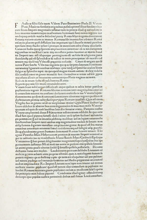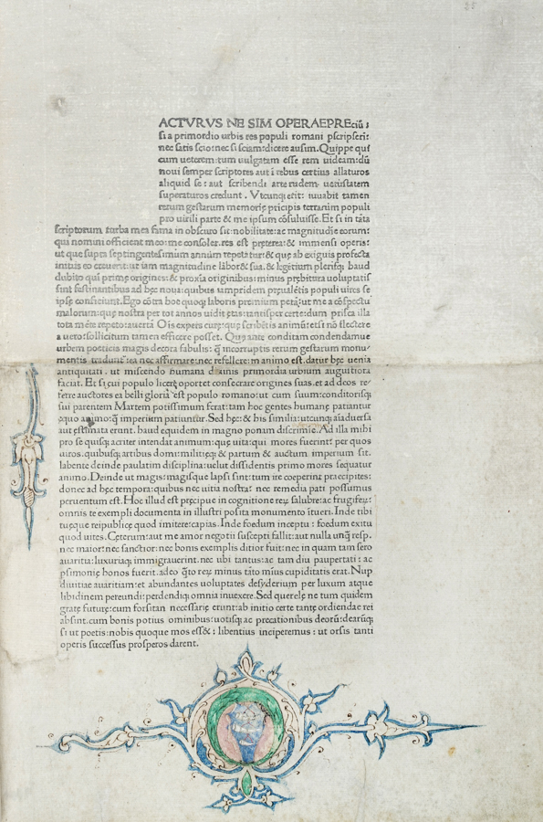 Livius Titus, Historiae Romanae decades. (Al colophon:) S.l. [i.e. Venezia]: S.e. [i.e. Vindelino da Spira], 1470.