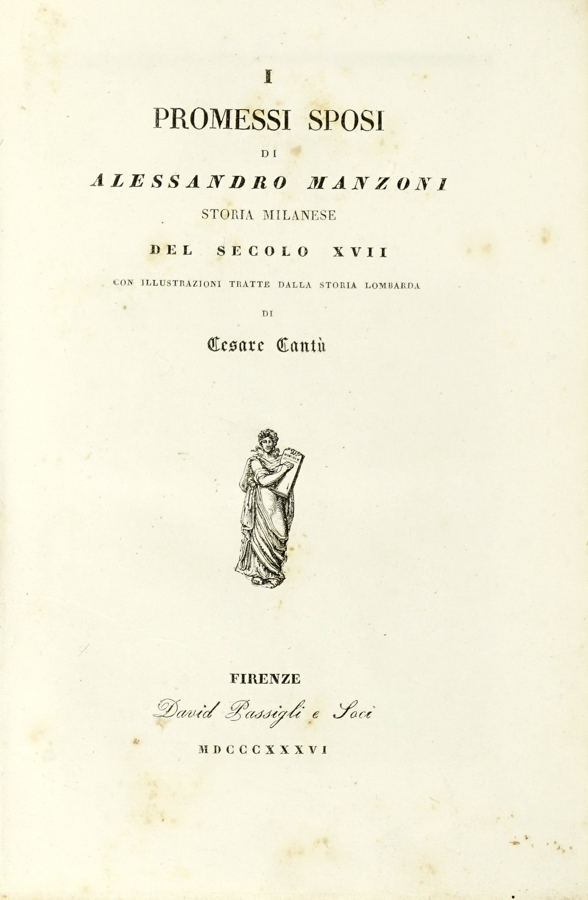 Manzoni Alessandro, I Promessi Sposi con illustrazioni tratte dalla storia lombarda di Cesare Cantù. Firenze: David Passigli e soci, 1836.