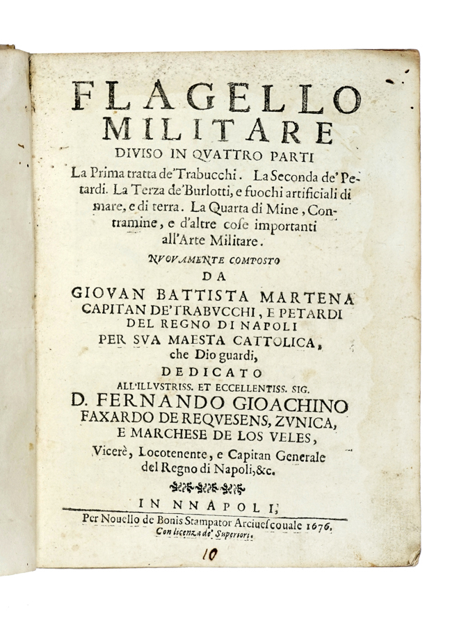 Martena Giovanni Battista, Flagello militare diviso in quattro parti... In Napoli: per Novello de Bonis stampator arcivescovale, 1676.