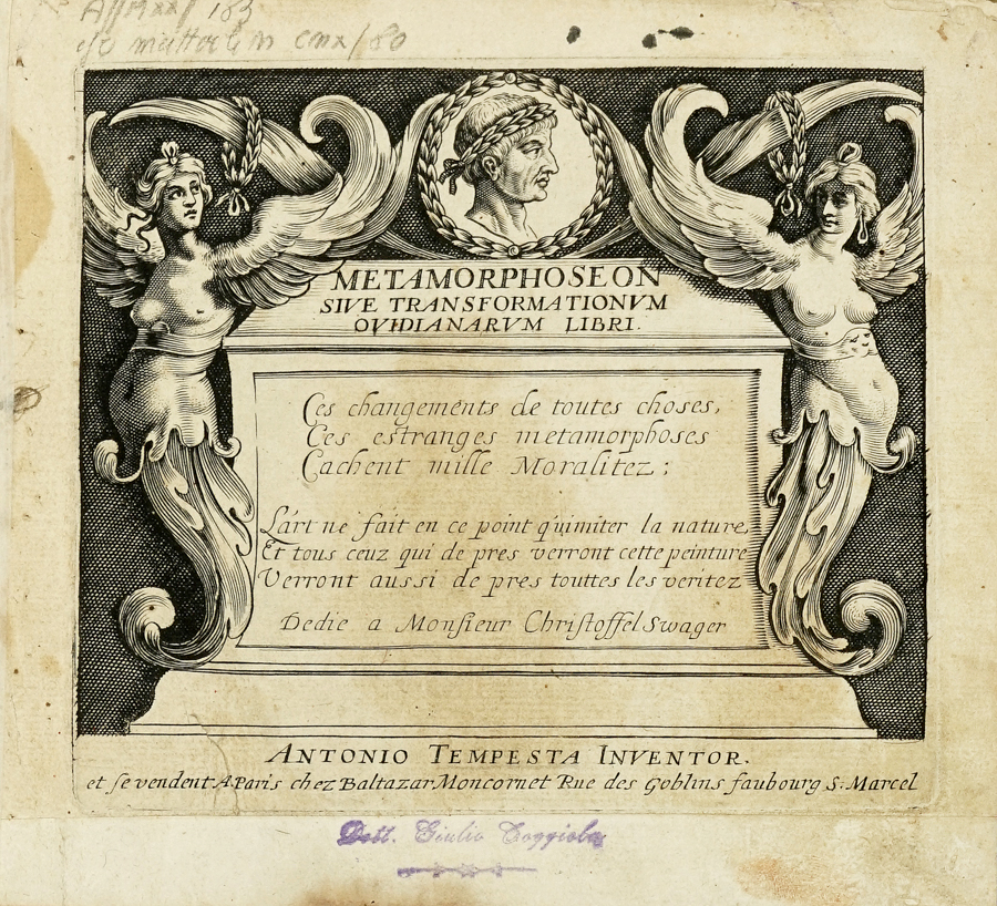 Ovidius Naso Publius, Metamorphoseon sive transformationum Ovidianarum libri... Paris: Balthazar Moncornet, s.d. [i.e. XVII secolo].