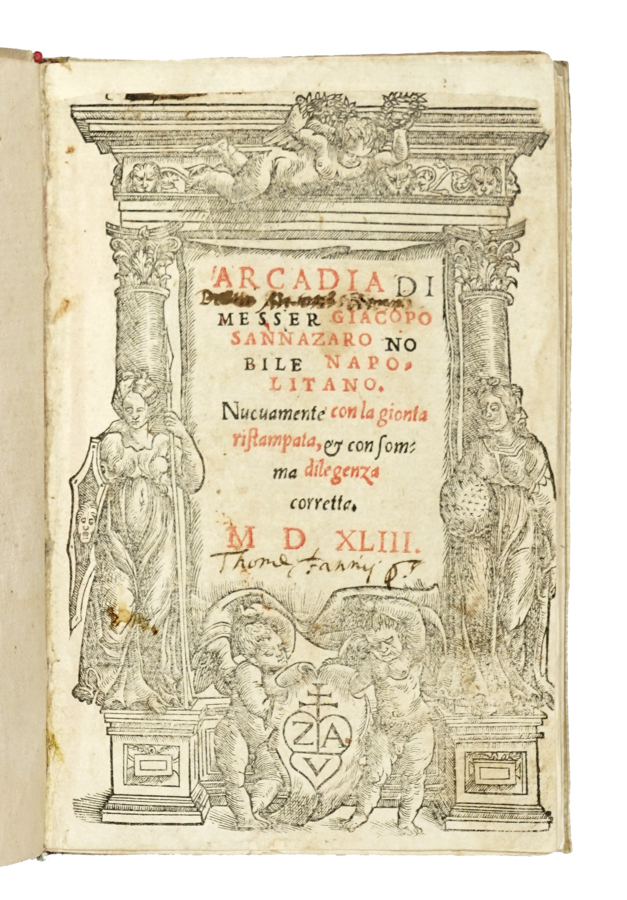 Sannazaro Jacopo, Arcadia. (Al colophon:) [Venezia]: Giovanni Andrea Valvassori e Florio Valvassori, 1543.